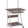 Escritorio multinivel con estante superior y bandeja inferior para extra espacio en la casa o la oficina.
